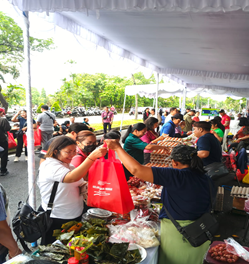 Sejak pagi hari, warga yang sedang berolahraga dan masyarakat sekitar sudah memadati lokasi penjualan. Banyak masyarakat memanfaatkan kesempatan membeli kebutuhan pokok dengan harga lebih murah dibanding pasar tradisional maupun ritel modern.