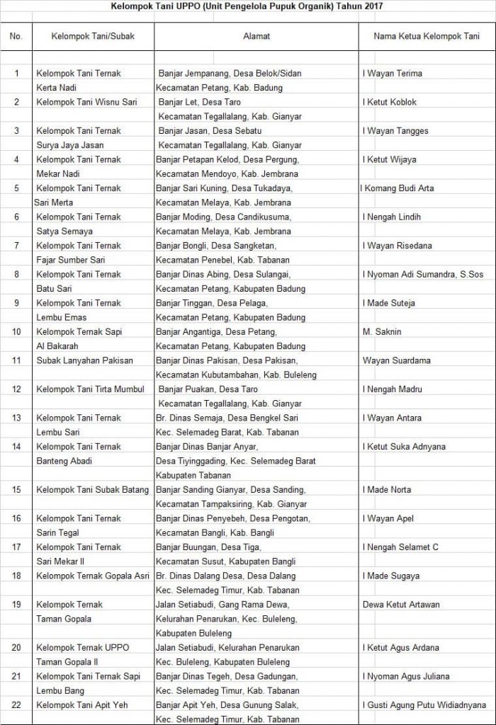 Kelompok Tani UPPO (Unit Pengelola Pupuk Organik) Tahun 2017