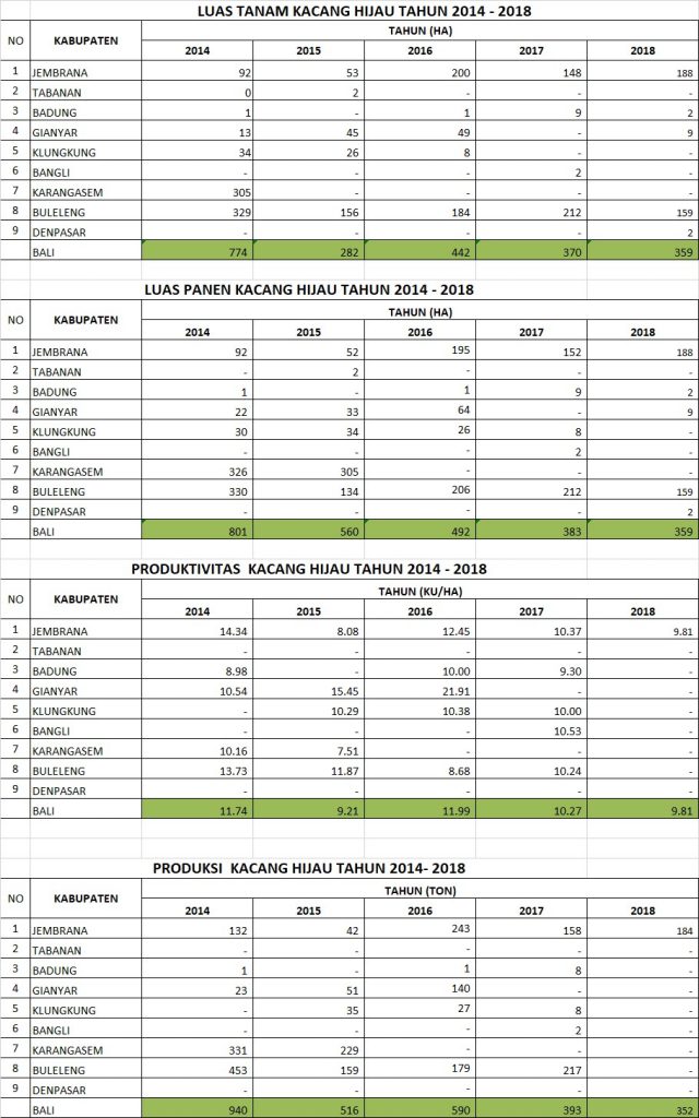 Kinerja Produksi Kacang Hijau Provinsi Bali 2016 – 2020