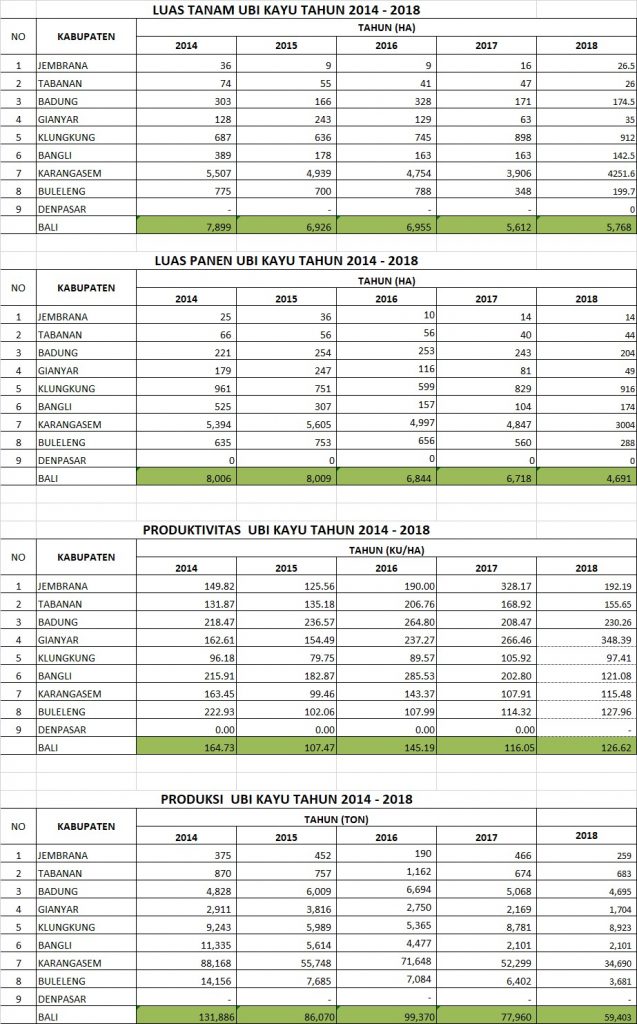 Kinerja Produksi Ubi Kayu Provinsi Bali 2016 – 2020