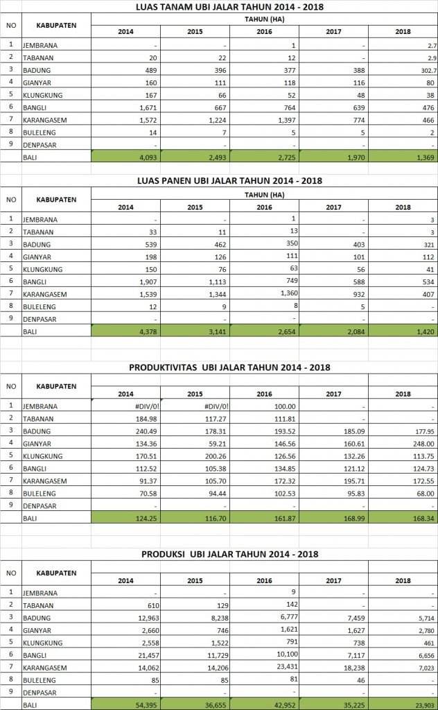 Kinerja Produksi Ubi Jalar Provinsi Bali 2016 – 2020