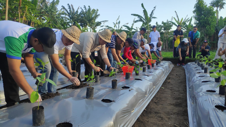 Denpasar, Dalam upaya mendukung ketahanan pangan dan pengendalian inflasi, Pemerintah Provinsi Bali hari ini melaksanakan gerakan tanam cabai di areal lahan Pemerintah Provinsi Bali. Dihadiri oleh Sekretaris Daerah Provinsi Bali, Dewa Made Indra didampingi Kepala Dinas Pertanian dan Ketahanan Pangan Provinsi Bali beserta Kepala Dinas OPD Lingkup Pemerintah Provinsi Bali pada Jumat (16/08/2024) bertempat di area lahan Pemerintah Provinsi Bali, Jalan Pegangsaan Timur, Gang Proklamasi Depan Museum Pancasila. Hadir pada kegiatan tersebut adalah petani dari Subak Yangbatu, Desa Renon, Kota Denpasar. Kegiatan ini ditandai dengan penanaman 2000 bibit cabai varietas unggul yaitu rawita F1, dengan luas areal demplot 10 are. Dimulai dari pengolahan tanah sampai dengan pemasangan mulsa oleh Tim dari Dinas Pertanian dan Ketahanan Pangan Provinsi Bali dan dukungan pemupukan dari pupuk dasar dibantu oleh Asosiasi Produsen Pupuk Organik Bali. Untuk pemeliharaan muali dari pemupukan, kapur pertanian, pupuk hayati, pestisida dan fungisisda difasilitasi oleh PT Pupuk Indonesia Persero yang diawali dengan uji kesuburan tanah oleh petugas laboratorium lapang PT. Pupuk Indonesia Persero.