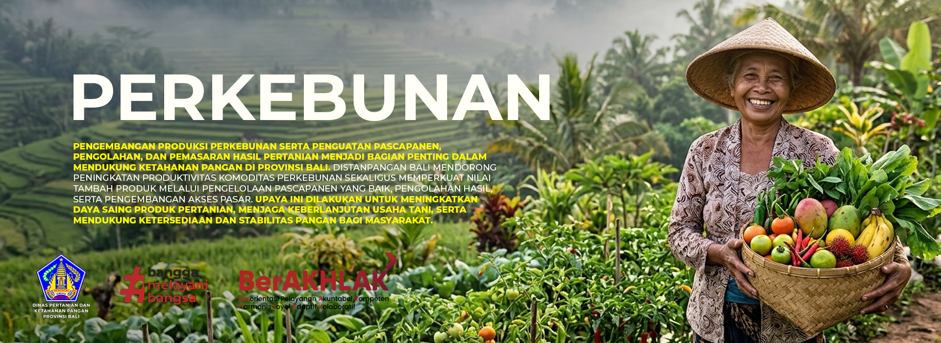 Dinas Pertanian dan Ketahanan Pangan Provinsi Bali menyediakan berbagai layanan kepada masyarakat, antara lain layanan informasi pertanian, pangan dan kesehatan hewan ternak, pembinaan kelompok tani/ternak, pengendalian organisme pengganggu tanaman (OPT), pengembangan komoditas pertanian, penyediaan benih bibit tanaman pangan hortikultura dan perkebunan, fasilitasi program peningkatan produksi pertanian, registrasi kebun, sertifikasi benih dan bibit tanaman pangan, hortikultura dan perkebunan, sertifikasi organik prima 2 & 3, layanan Nomor Kontrol Veteriner (NKV), penyediaan benih hewan ternak, layanan vaksinasi rabies, serta dukungan teknis bagi petani, peternak dan pelaku usaha pertanian.