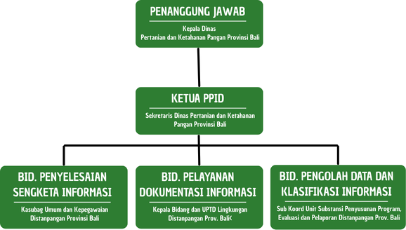 Undang Undang No 14 Tahun 2008 tentang Keterbukaan Informasi Publik (KIP) mengamanatkan setiap Badan Publik Pemerintah mempunyai kewajiban untuk menyediakan informasi Publik yang berada di bawah kewenangannya kepada masyarakat dengan cepat, tepat waktu, biaya ringan dan cara sederhana. Selain Undang Undang Keterbukaan Informasi Publik, menurut kinerja Badan Publik yang transparan, efektif, efisien dan akuntabel. Oleh karena itu pelayanan informasi publik harus memperoleh perhatian yang sungguh-sungguh dari semua badan publik penyedia informasi, dengan meningkatkan pengelolaan informasi yang berkualitas serta memberikan pelayanan dan menyediakan informasi publik yang mudah diakses oleh masyarakat. Dinas Pertanian dan Ketahanan Pangan Provinsi Bali sebagai PPID Pembantu ditetapkan dengan Keputusan Gubernur Bali Nomor 407/03-HK/2021 sesuai dengan Peraturan Gubernur No. 42 Tahun 2022 Tentang Pedoman Pelayanan Informasi Publik dan Dokumentasi| No | Tugas |