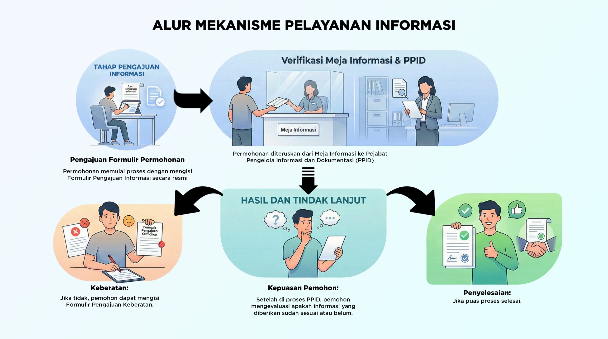 - Apabila pemohon tidak puas dengan keputusan Atasan PPID, maka dapat mengajukan keberatan kepada Komisi Informasi dalam jangka waktu 14 (empat belas) hari kerja sejak diterimanya putusan.