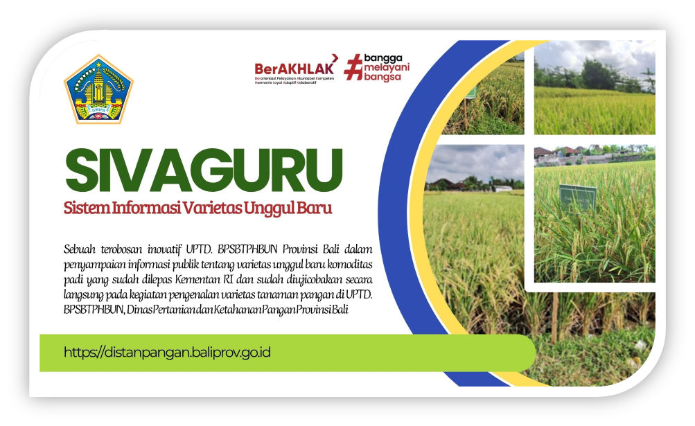 Sistem Informasi Varietas Unggul Baru merupakan terobosan inovasi dari UPTD. Balai Pengawasan Sertifikasi Benih Tanaman Pangan, Hortikultura dan Perkebunan Dinas Pertanian dan Ketahanan Pangan Provinsi Bali sebagai media informasi varietas-varietas unggul baru pada komoditas padi yang sudah dilepas Kementerian Pertanian Republik Indonesia dan sudah diujicobakan secara langsung pada kegiatan pengenalan varietas sehingga dapat menjadi referensi bagi petani untuk pergiliran atau pergantian varietas lama yang biasa dikembangkan di lahan mereka.